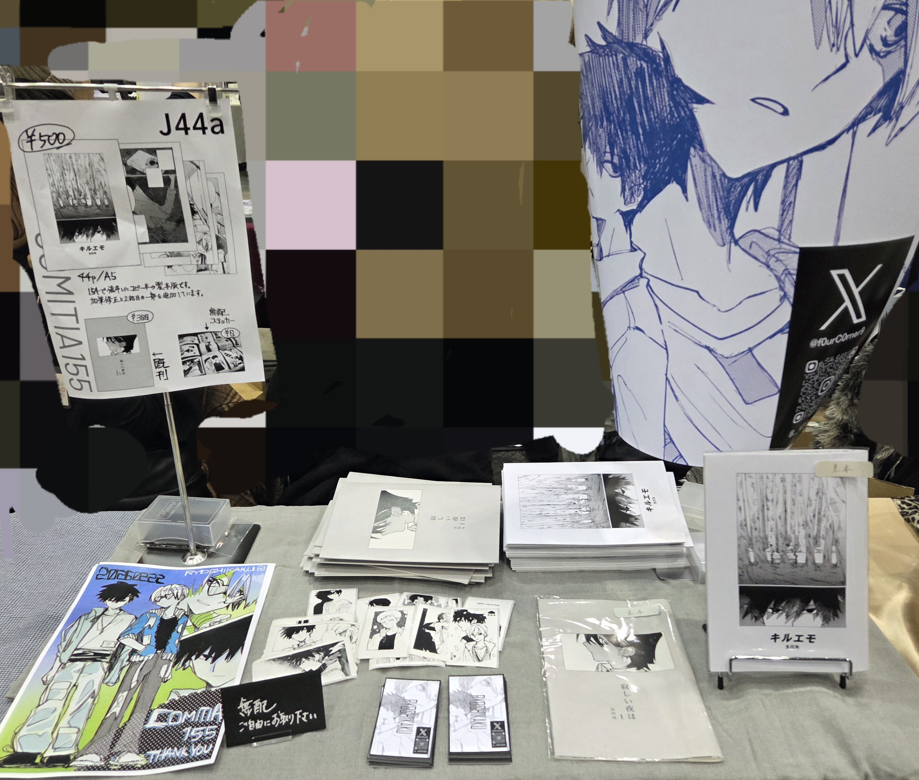 電車が遅延していて30分前に会場に到着。見本誌シールを置いてきたらしく大焦りで本部から貰い、高速で設営した。